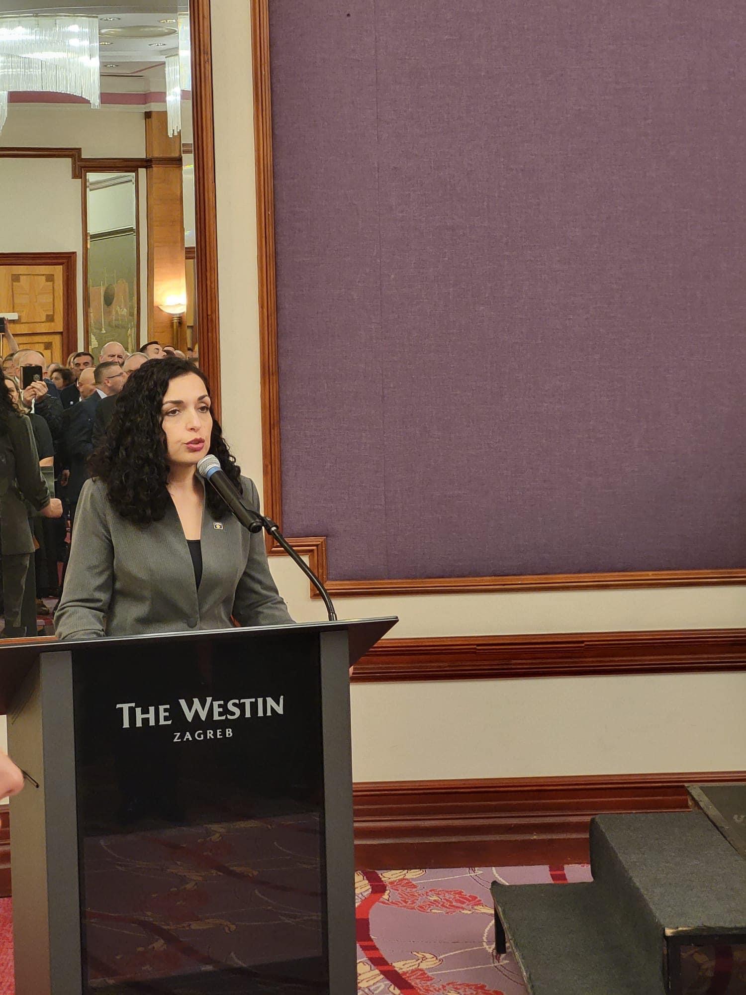 Nakon toga, predsjednik RH Zoran Milanović organizirao je svečanu večeru za predsjednicu Kosova na kojoj je nazočio i predsjednik Vijeća albanske nacionalne manjine Grada Zagreba Emirat Asipi.